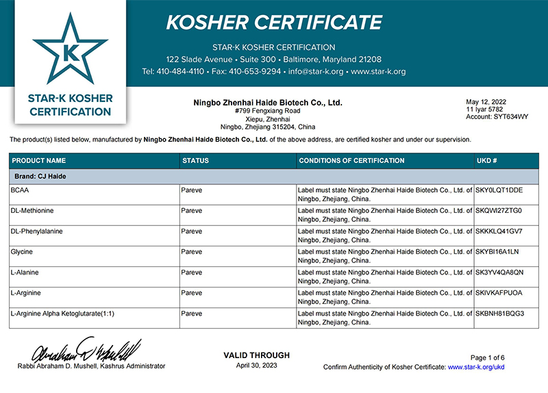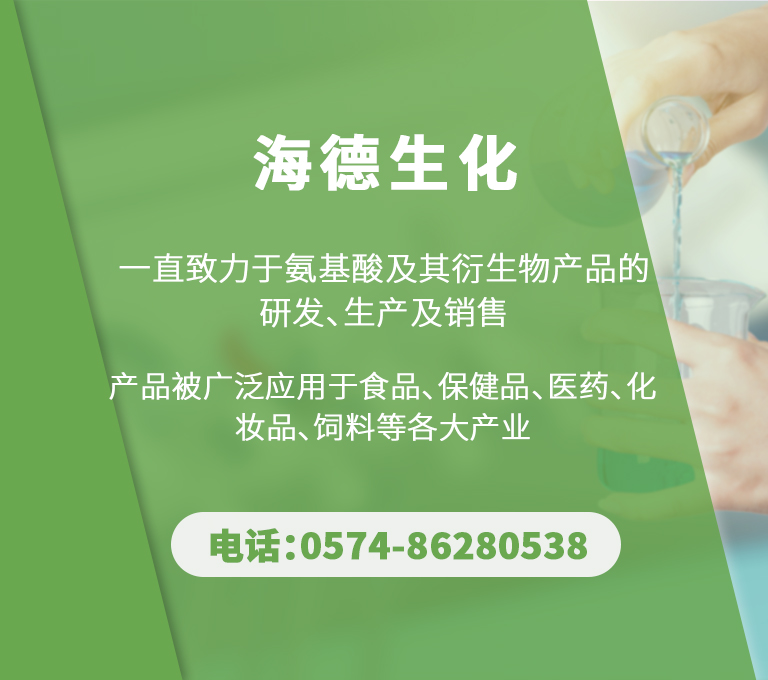 寧波市鎮(zhèn)海海德生化科技有限公司秉承“質(zhì)量為本,真誠(chéng)守信”的經(jīng)營(yíng)方針,海德尊崇“踏實(shí)、拼搏、責(zé)任”的企業(yè)精神,為以合作、共贏(yíng),開(kāi)創(chuàng)的經(jīng)營(yíng)理念,創(chuàng)造良好的企業(yè)環(huán)境;持續(xù)穩(wěn)定地為全世界客戶(hù)提供高品質(zhì)的氨基酸產(chǎn)品!